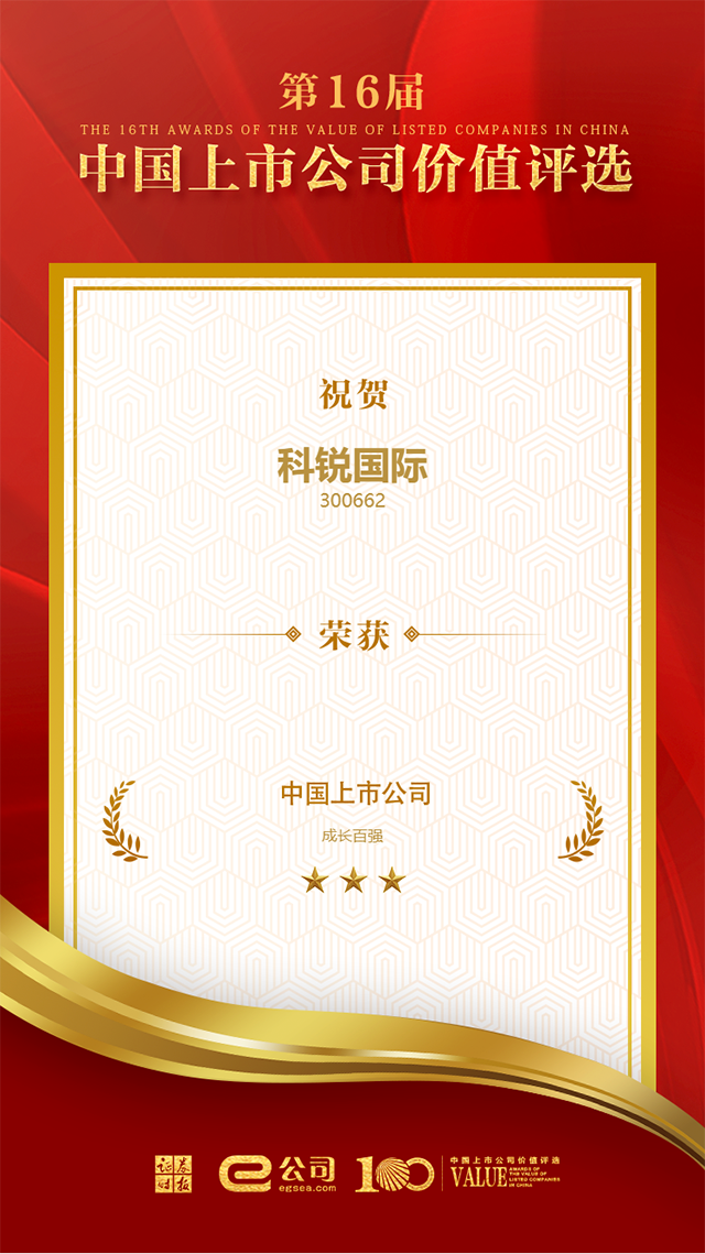伟德国际1946国际荣膺 “中国上市公司成长100强”